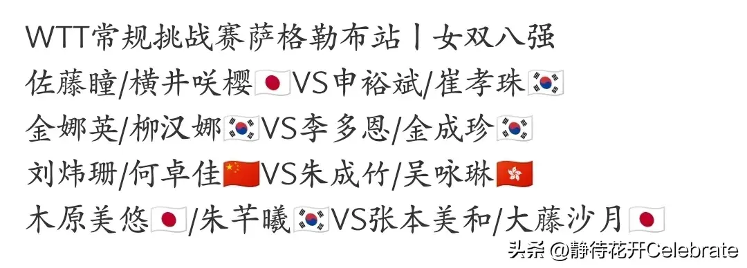 女双八强全部产生,主要是日韩组合之间的竞争。