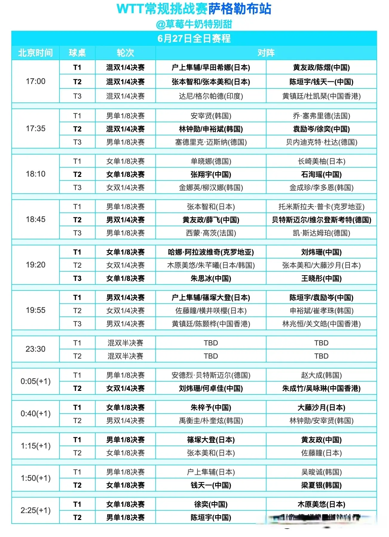 今天将上演6场中日对决,两场国乒内战,两场中韩对决。